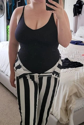 These bodysuits have a built-in cup to accommodate even the largest busts (DDD+, see our video above). Most women choose not to wear a bra, but some prefer to, so it’s completely up to you. We recommend trying it with or without a bra if you have a fuller bust to see what you prefer. Either way, you will look stunning without a bra.